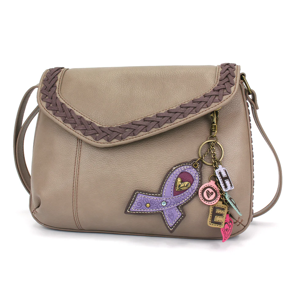 Braided Boho Crossbody – Charming Charms Lavender Ribbon – warm gray