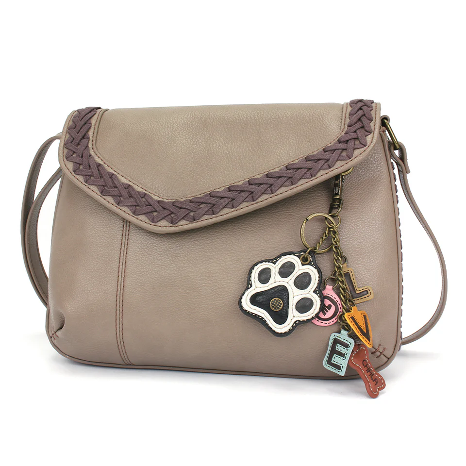 Braided Boho Crossbody - Charming Charms Paw+LOVE - warm gray quantity