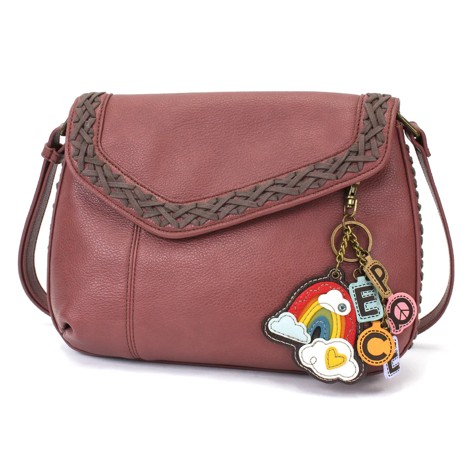 Braided Boho Crossbody – Charming Charms Rainbow+PEACE – berry