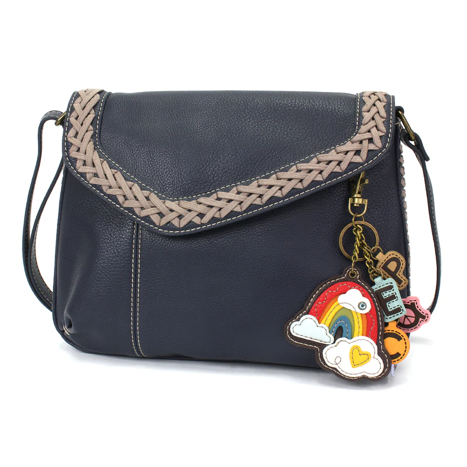 Braided Boho Crossbody - Charming Charms Rainbow+PEACE - navy quantity
