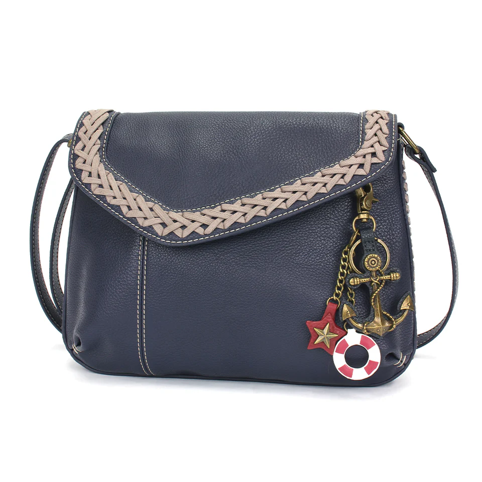 Braided Boho Crossbody – Metal Charming Anchor – navy