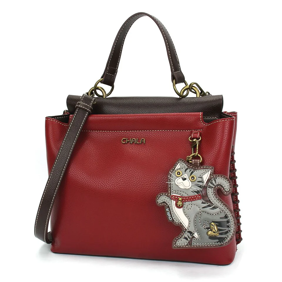 Charming Satchel - Tabby Cat - gray - burgundy quantity