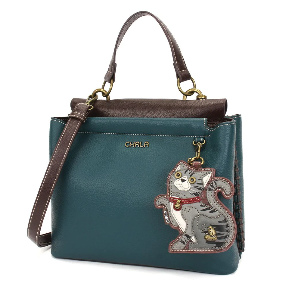 Charming Satchel - Tabby Cat - gray - turquoise quantity