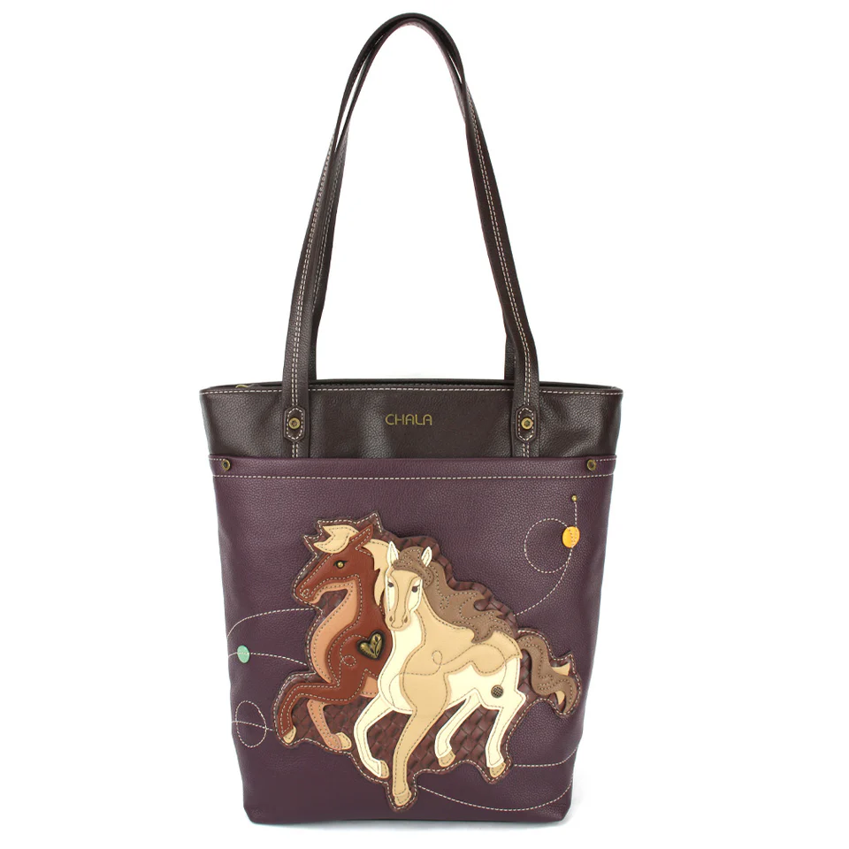 Deluxe Everyday Tote – Horses – plum