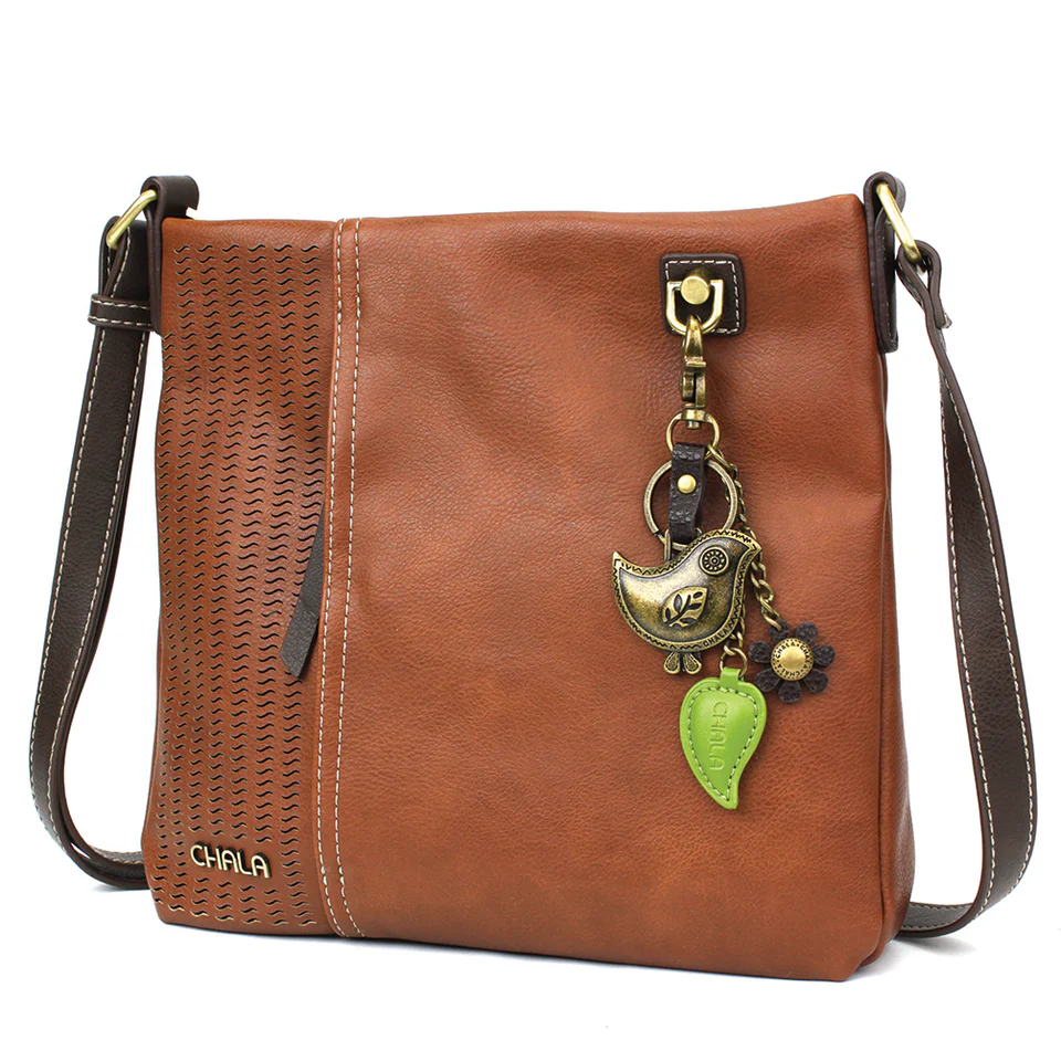 LaserCut Crossbody - Metal Charming Bird - brown quantity