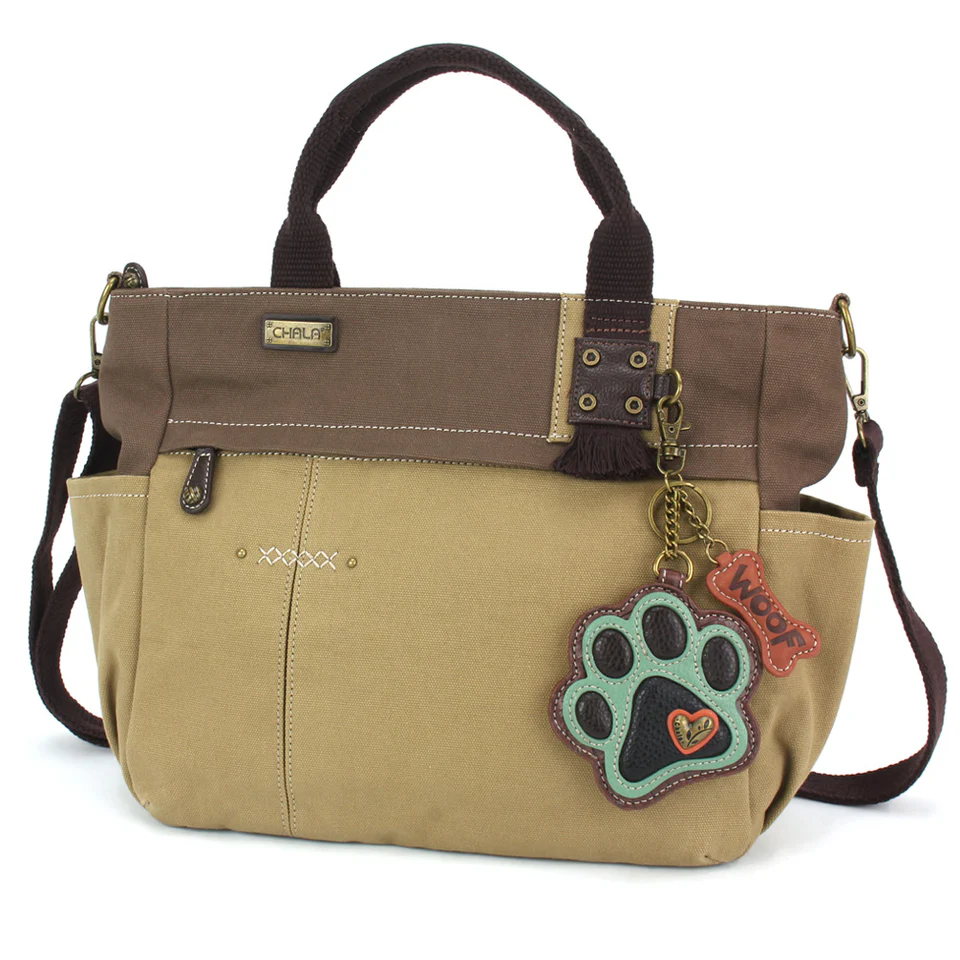 Multi Pocket Tote – Paw Print – teal – olive