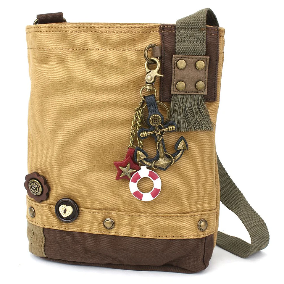 This stylish Patch Crossbody Bag in classic brown is perfect for everyday use. It features a shiny metal anchor charm for a touch of nautical style. Compact but roomy enough for your essentials, it’s great for on-the-go days.