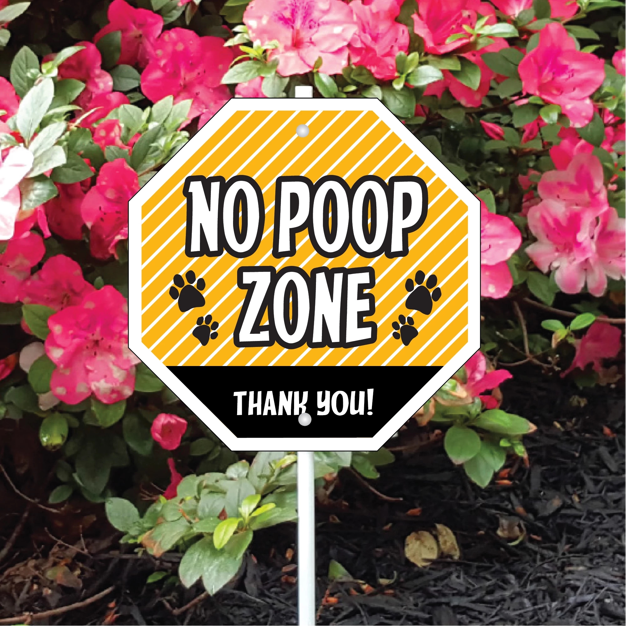 Maintain cleanliness with the "NO POOP Yellow" garden sign. Its bright color and clear message help enforce rules in your outdoor space.